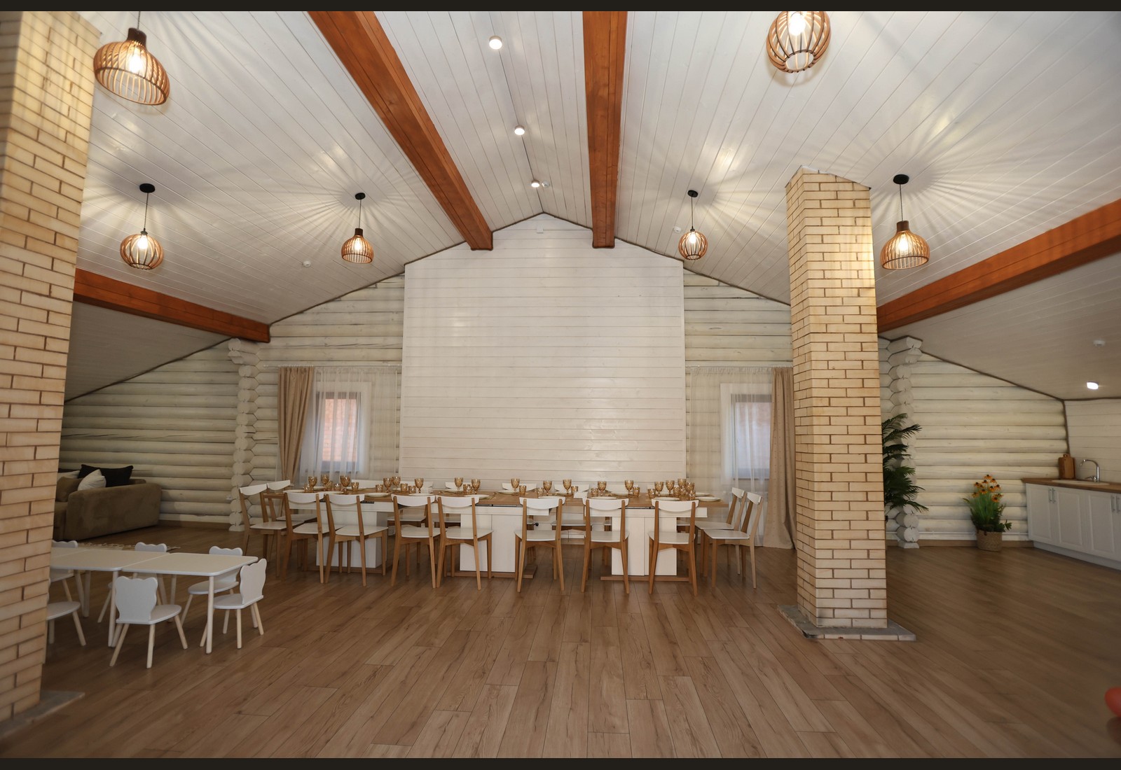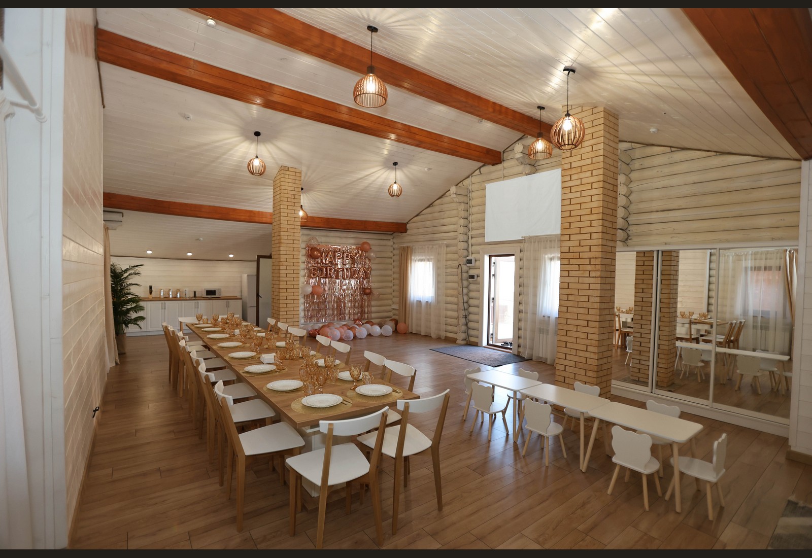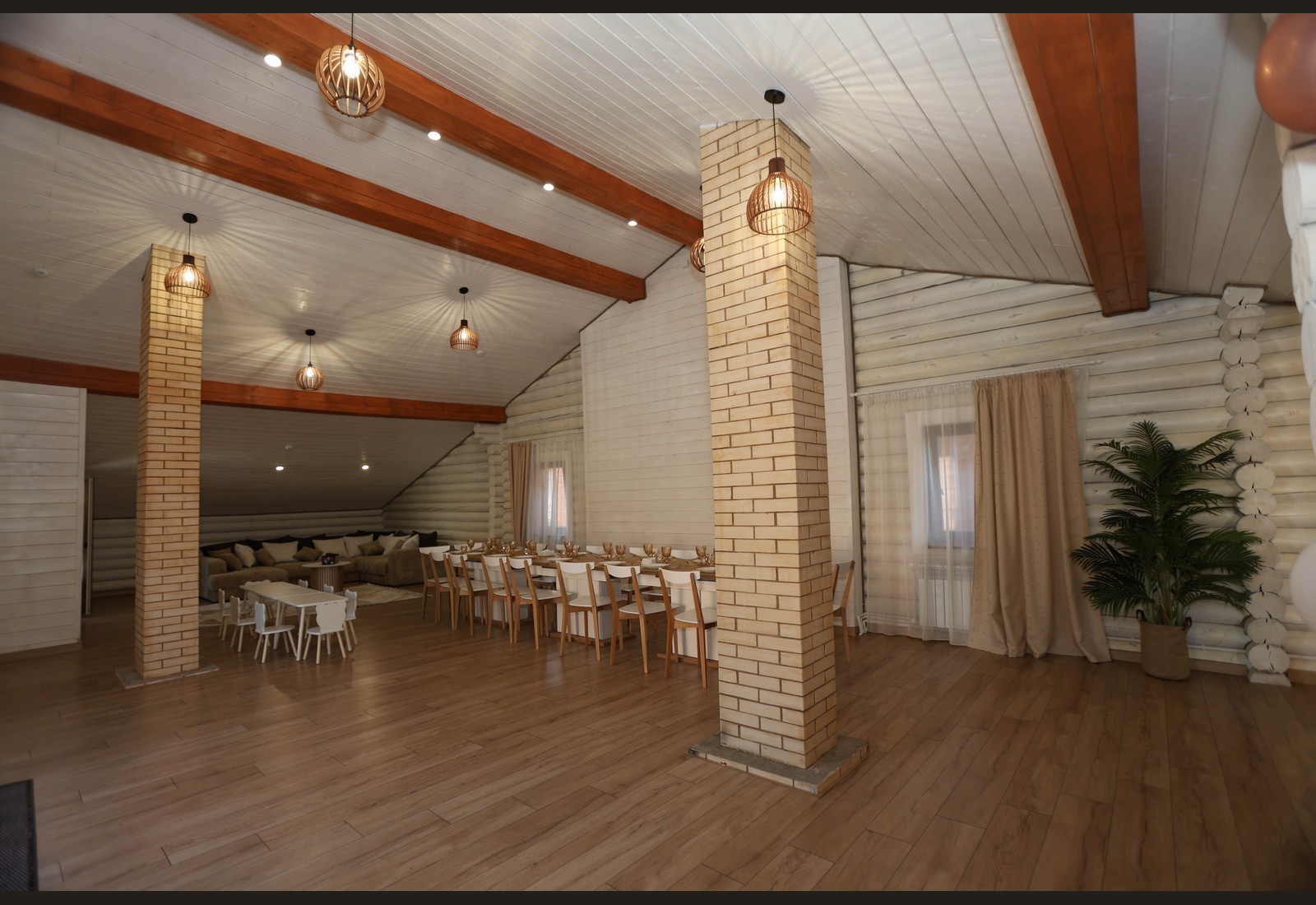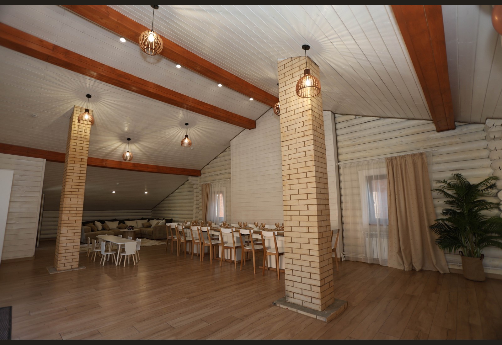 - Просторный зал с тёплой атмосферой