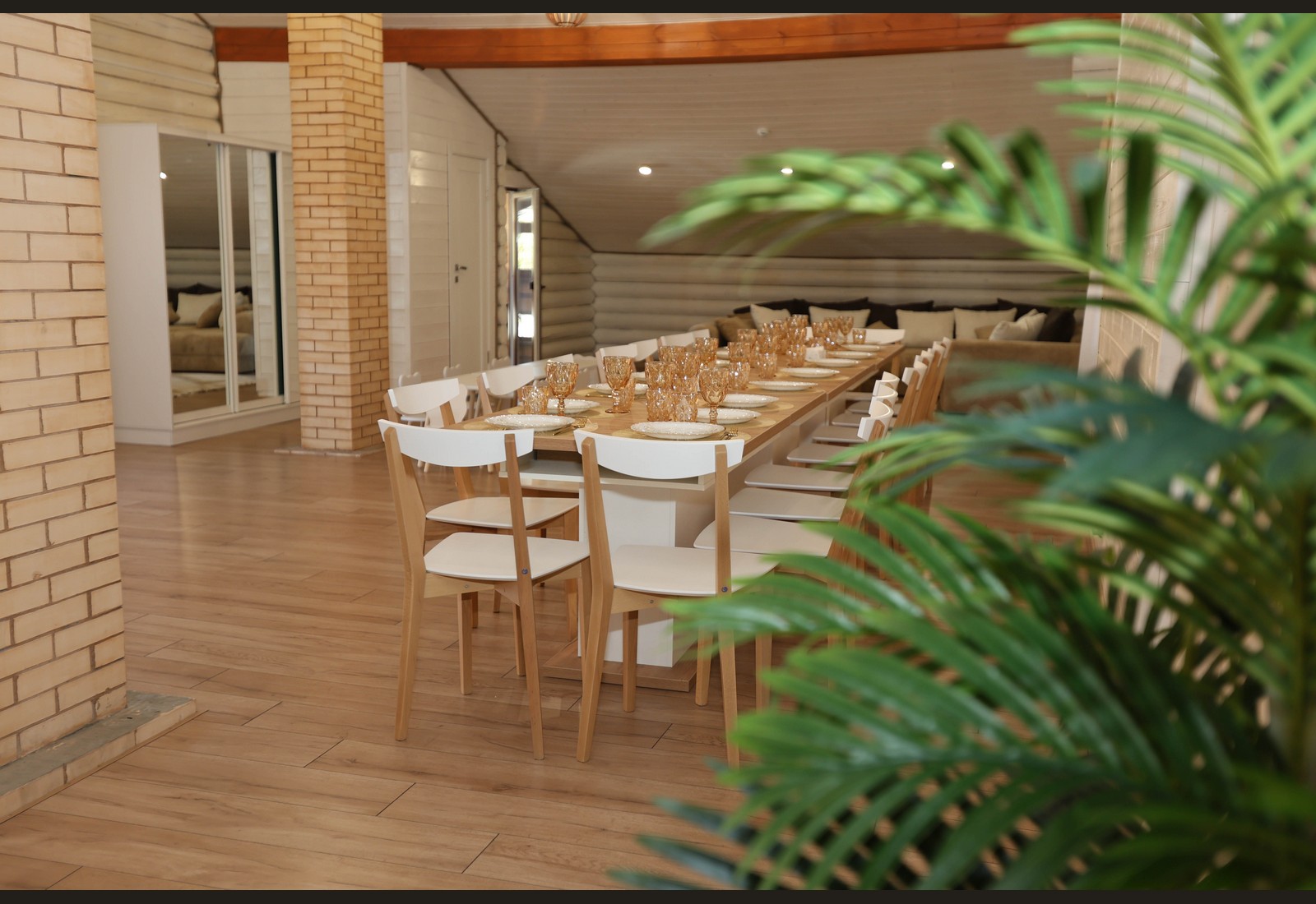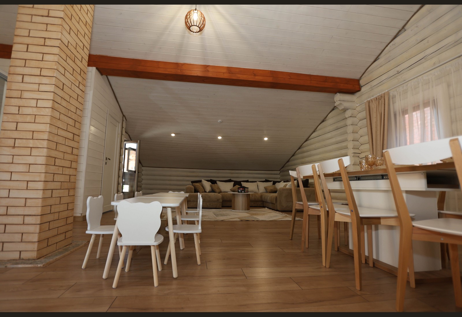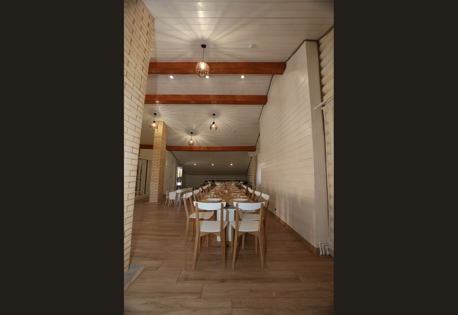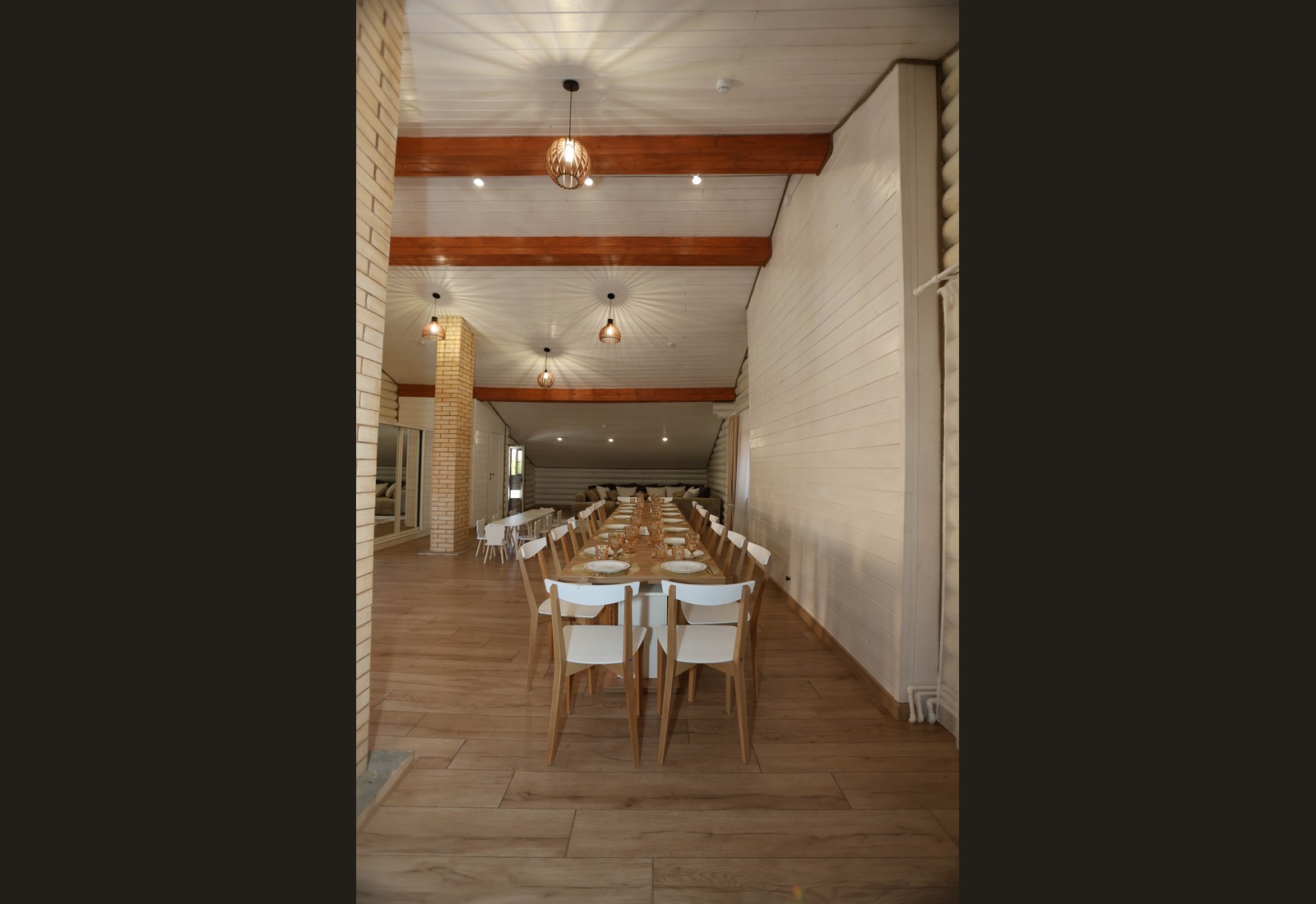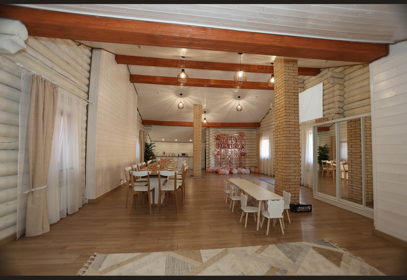 - Просторный зал с тёплой атмосферой