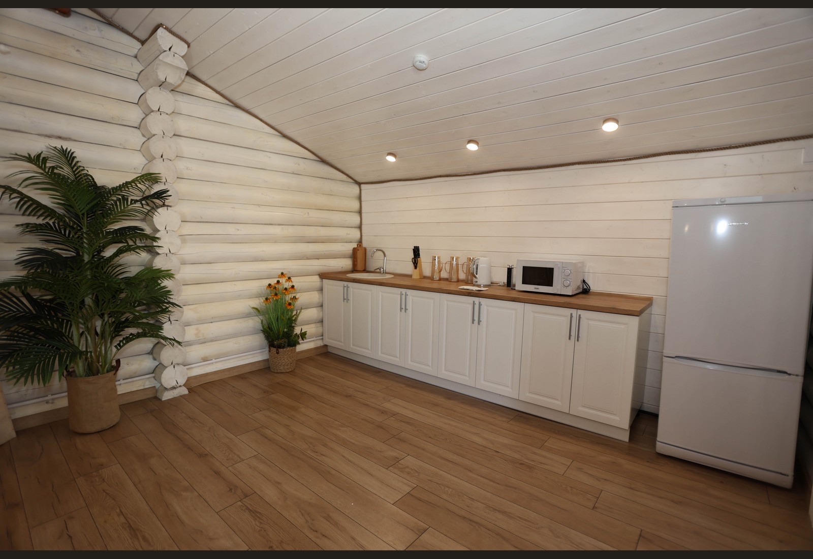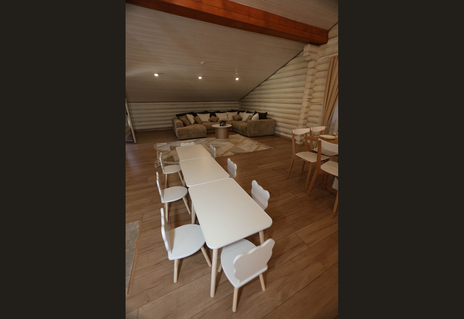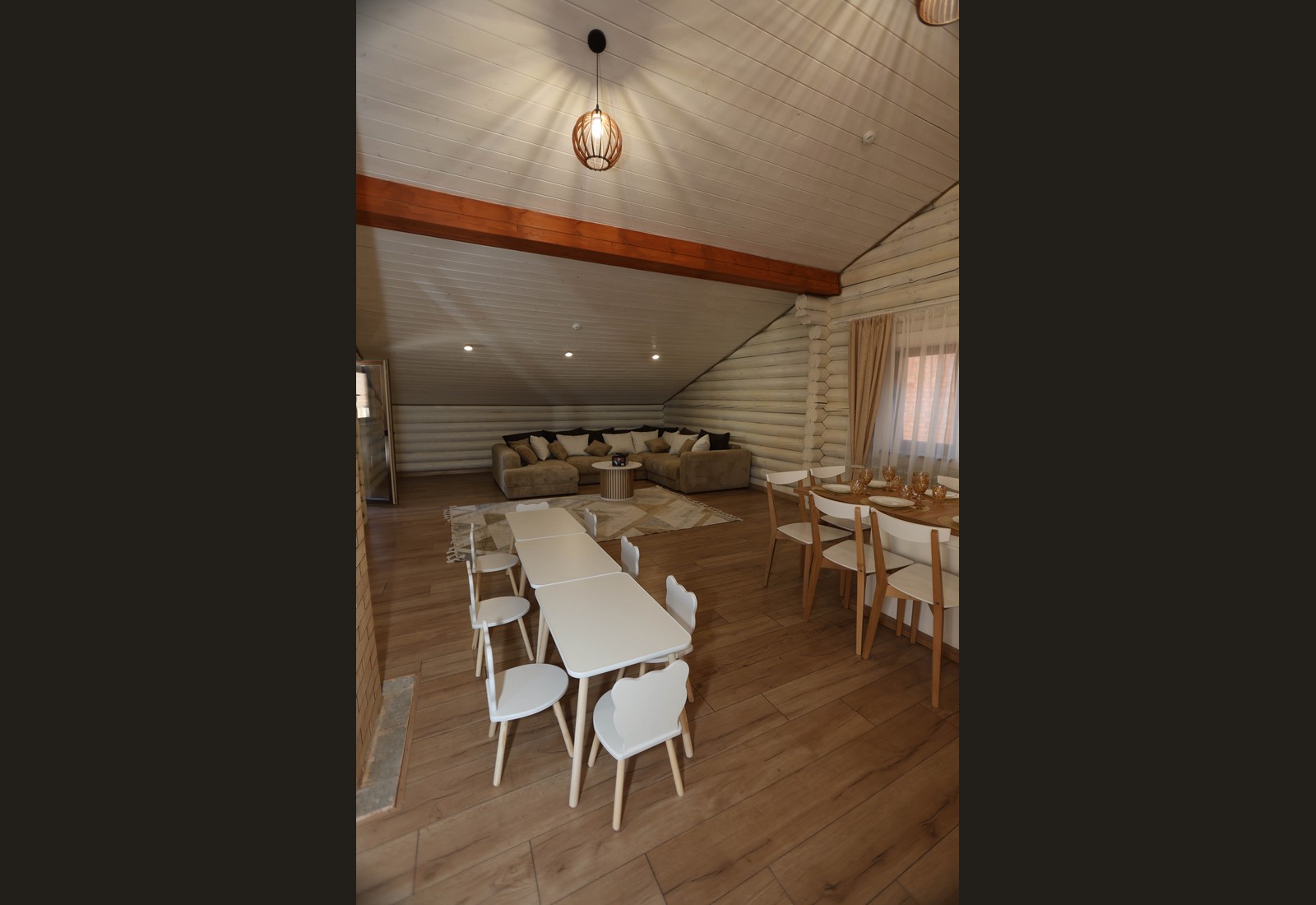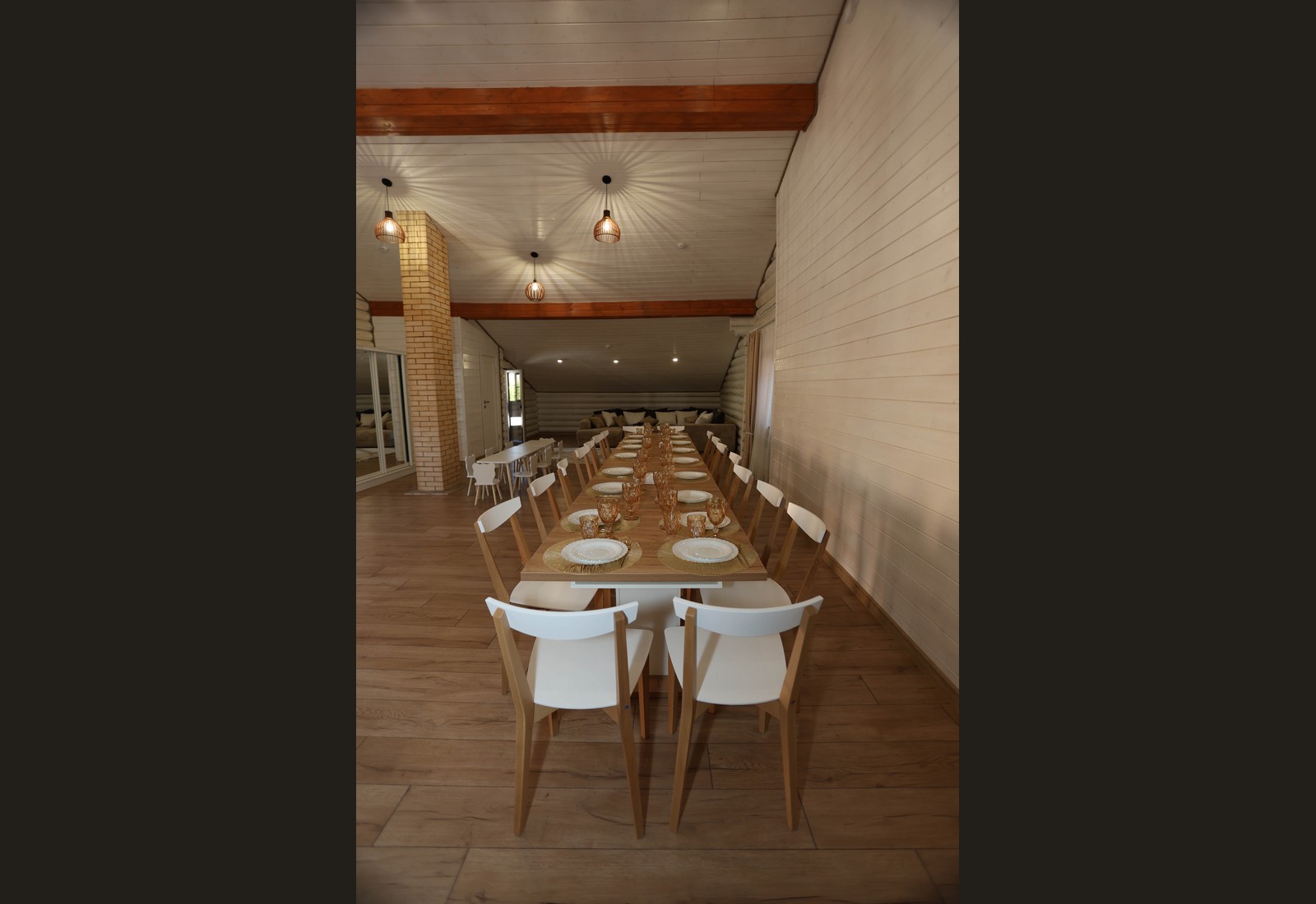 - Просторный зал с тёплой атмосферой